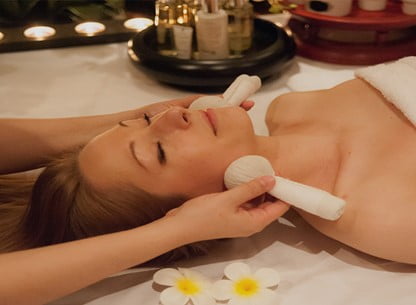 Η μάλαξη με ζεστά πουγκιά θεραπευτικών βοτάνων είναι μία απολαυστική περιποίηση προσώπου που βοηθά στην απελευθέρωση από τη σωματική και συναισθηματική ένταση.Η ομορφιά και η λάμψη στο πρόσωπο είναι αποτέλεσμα της ηρεμίας, της χαλάρωσης και της αναζωογόνησης που οφείλεται στη δράση των βοτάνων τα οποία περιέχονται σε αυτά.Η μάλαξη γίνεται με ροές, ανατρίψεις, περιστροφικές κινήσεις και πιέσεις στα σημεία βελονισμού με σκοπό την κινητοποίηση της ενέργειας στους μεσημβρινούς.Τα αρώματα που απελευθερώνονται από τα θερμαινόμενα πουγκιά φέρνουν αρμονία και εσωτερική ισορροπία στον αποδέκτη. Η θεραπεία δρα και προληπτικά κατά της γήρανσης.